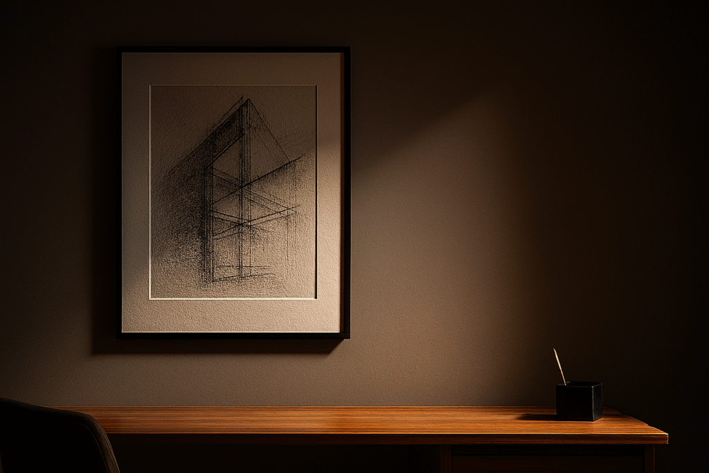 • Charcoal sketches, ink drawings, or minimal abstract pieces that ground the mind.